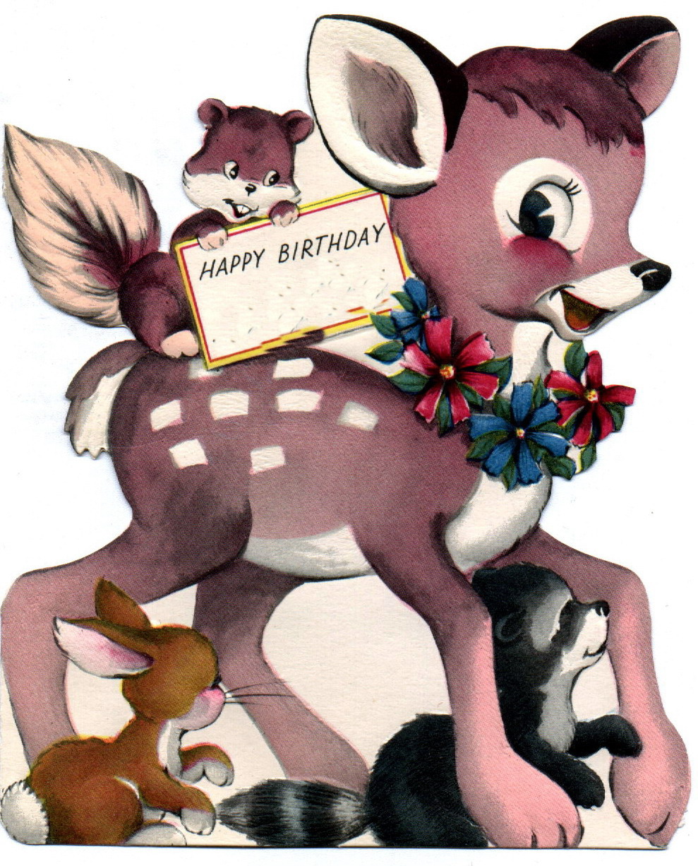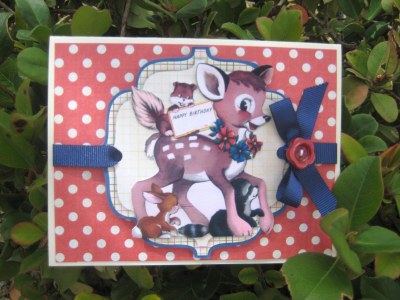 bunny, buttons, cards, deer, free collages, happy birthday, paper cutting, polka dots, retro children's birthday cards, ribbon, sassafras lass layouts, scrapbooking, vintage cards, vintage images