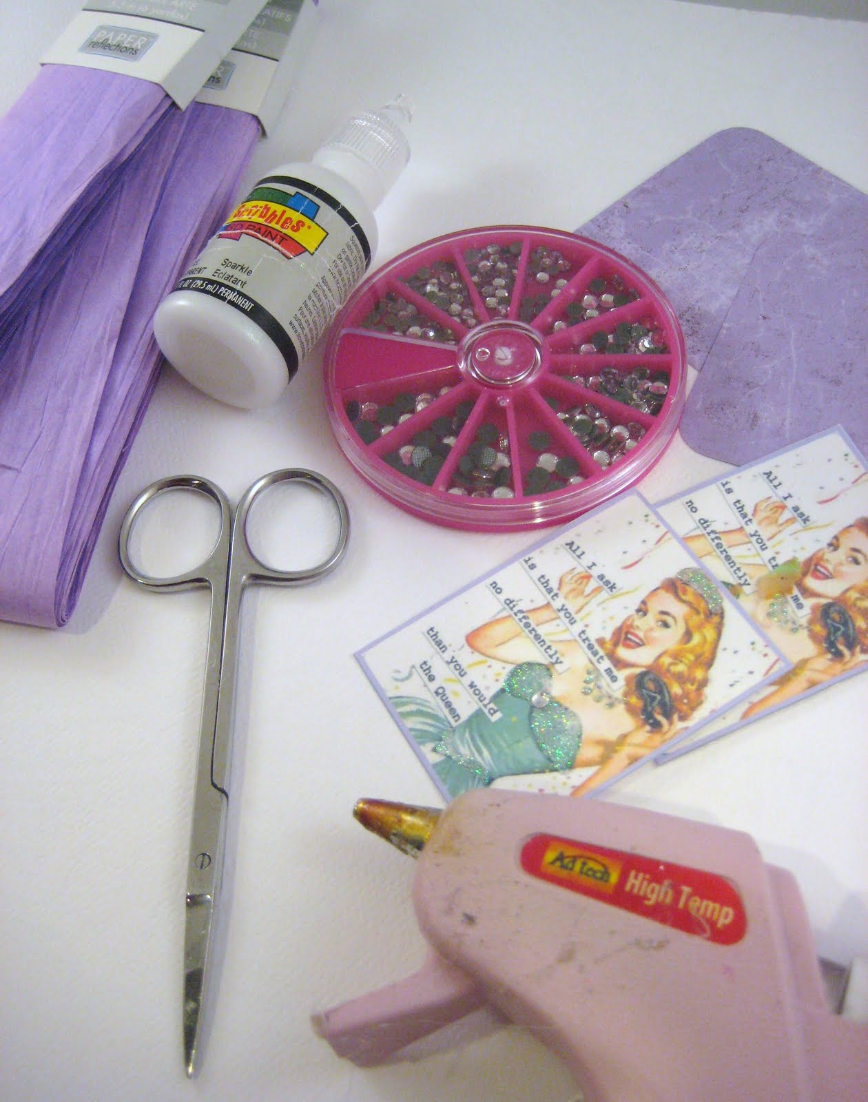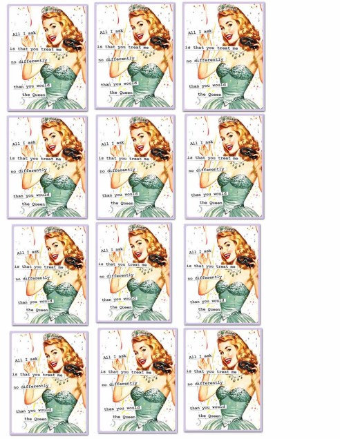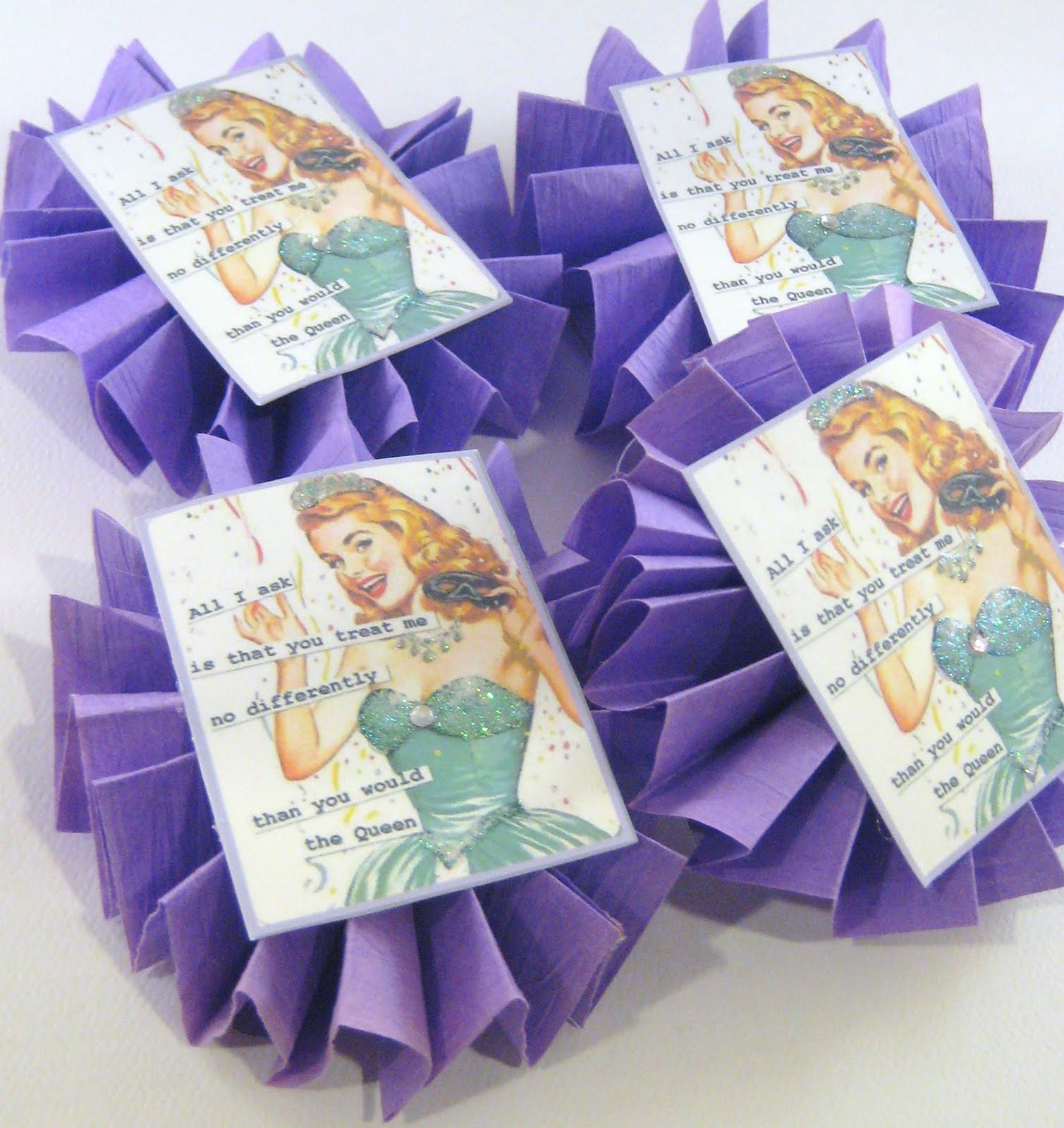 cupcake toppers, digital collages, do it yourself decorations, free JPEGs, frou frou, funny birthday card, how to, kitschy, party, party decorations, pin-ups, purple, queen, retro images