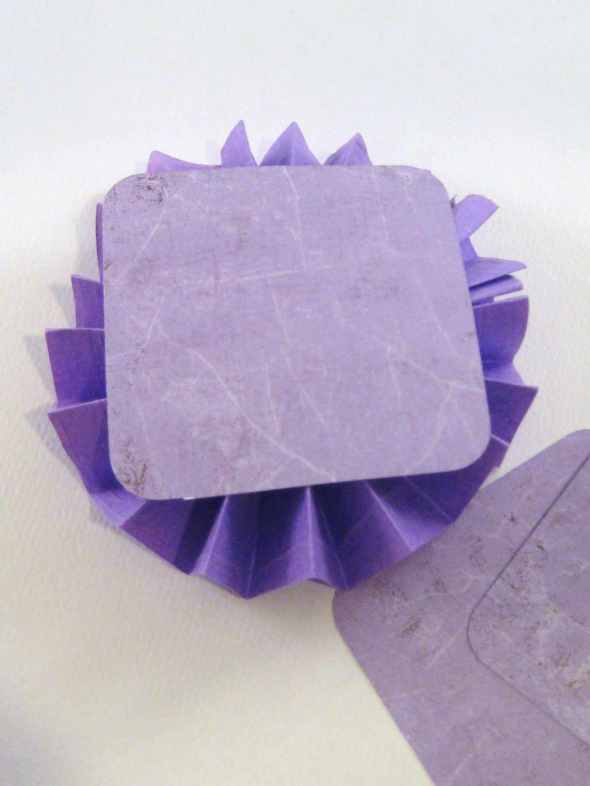 I cut squares out of card stock with my Cricut and glued them to the back so that the piece would be sturdy.  Finally, I added some glue inside one of the bottom folds and inserted the stick.  Easy as pie!