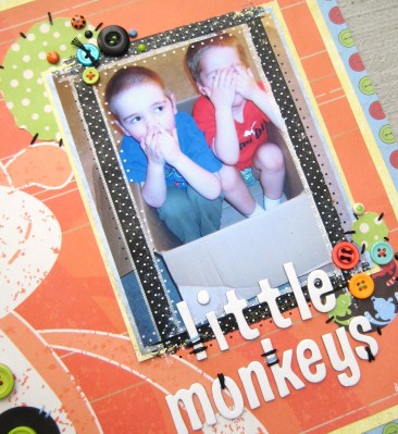 boy scrapbook pages, buttons, cousins, daisy d's layout, little monkeys, orange, personality, recollections layouts, scrapbook ideas, scrapbook pages