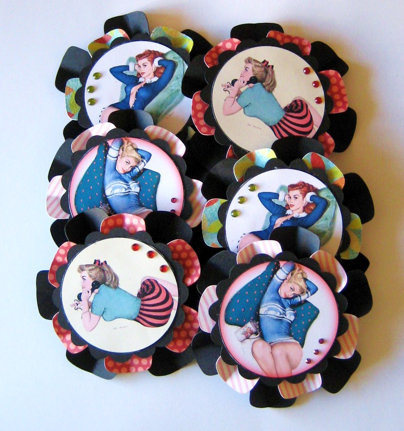 First, cut out the images you want to use (you can use digital collages, or even just punch out sections of pretty paper).  I cut mine as 2 inch circles.