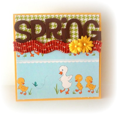 american crafts, artfire, ducks, farm, flowers, greeting, handmade, handmade cards, houndstooth, october afternoon, polka dots, ribbon, spring, spring cards, springtime, thickers, vintage