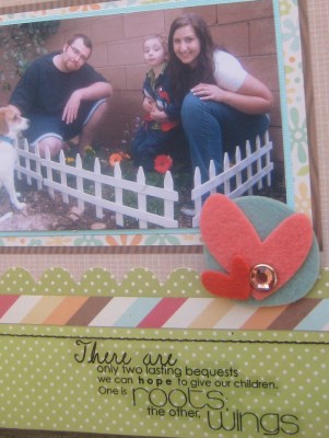 I found this pre-made page from K & Company at the scrapbook store the other day and HAD to pick it up! It made for one of the easiest layouts I’ve ever done!