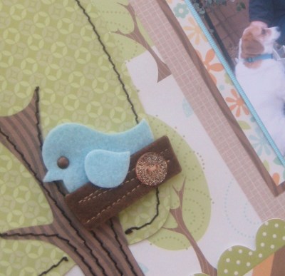 I love all the paper piecing and stitching on the page. I added two felt embellishments from American Crafts and a quote sticker at the bottom (just because I always feel that I have to add something myself).