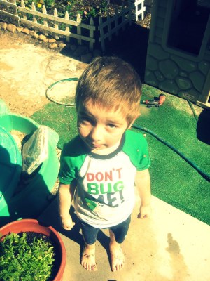 The picture really captured the season for me. I can’t count how many times Jackson has “helped” water the plants, only to come to the door covered in mud and soaking wet!