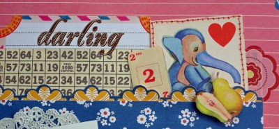 This page was all about layers for me.  I used several layers just in the background cardstock alone and then added here and there until I found a collage that I liked (the page weighs like 5 pounds! lol).