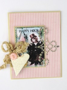 This Vintage style is so much fun to work with. I added lots of Tim Holtz Vintage Photo Distress Ink and Diamond Stickles throughout to really bring all the fussy cut images to life.