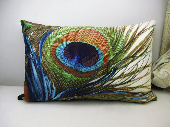 Velvet is the order of the day with this rich peacock pillow cover at WhooplaArt. It’s sure to be the envy of all your guests!